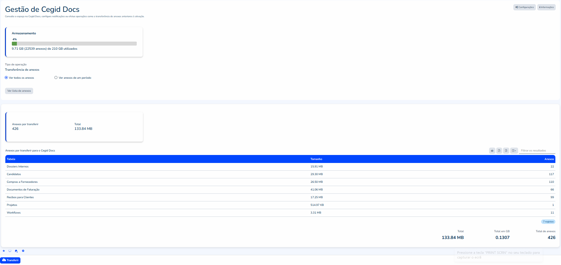 Além da documentação que o ERP guarda automaticamente no arquivo legal, pode fazer upload direto de outra e consultá-la online, a qualquer momento.